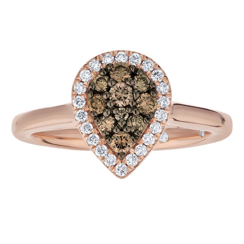 14K Rose Gold Pear Shape Cognac and White Diamond Halo Ring