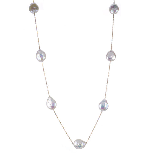 14KT Yellow Gold Freshwater Keshi Pearl Station Necklace