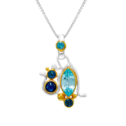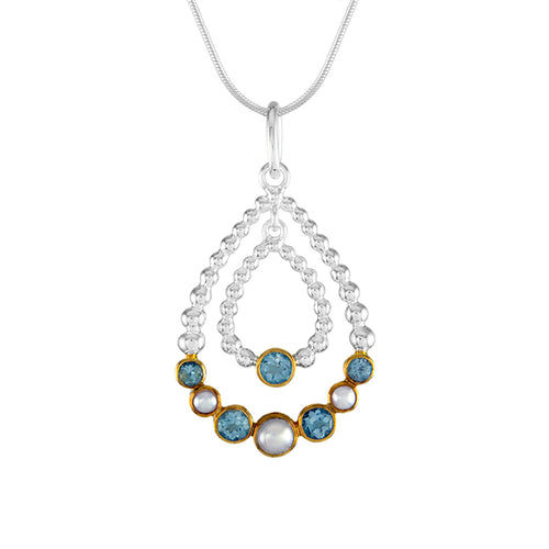 Sterling Silver 22k gold Teardrop Pearl and Topaz Pendant