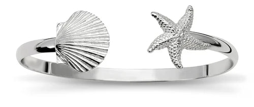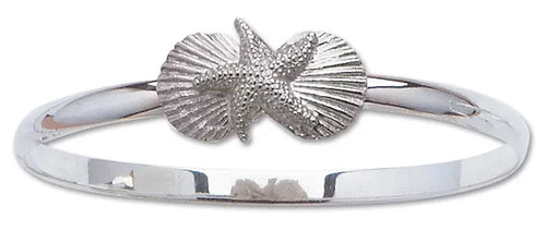 Sterling Silver Starfish and Seashell Bangle