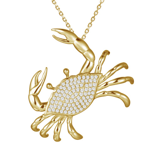 Sterling Silver Yellow Plated Crab Pendant with CZs